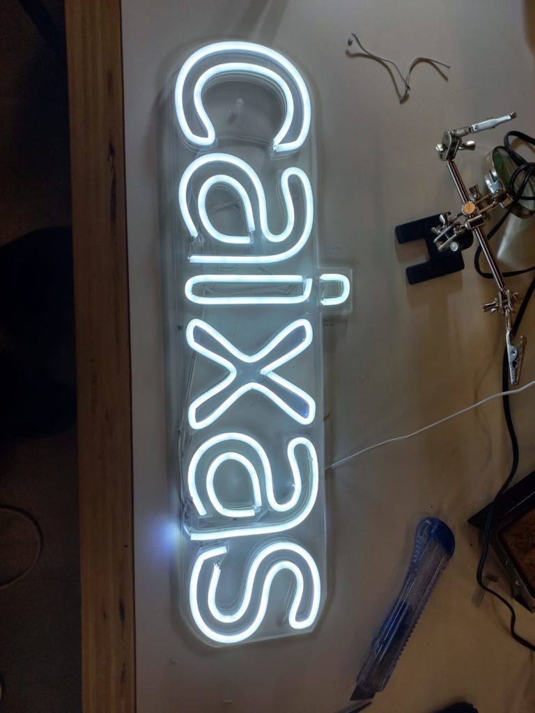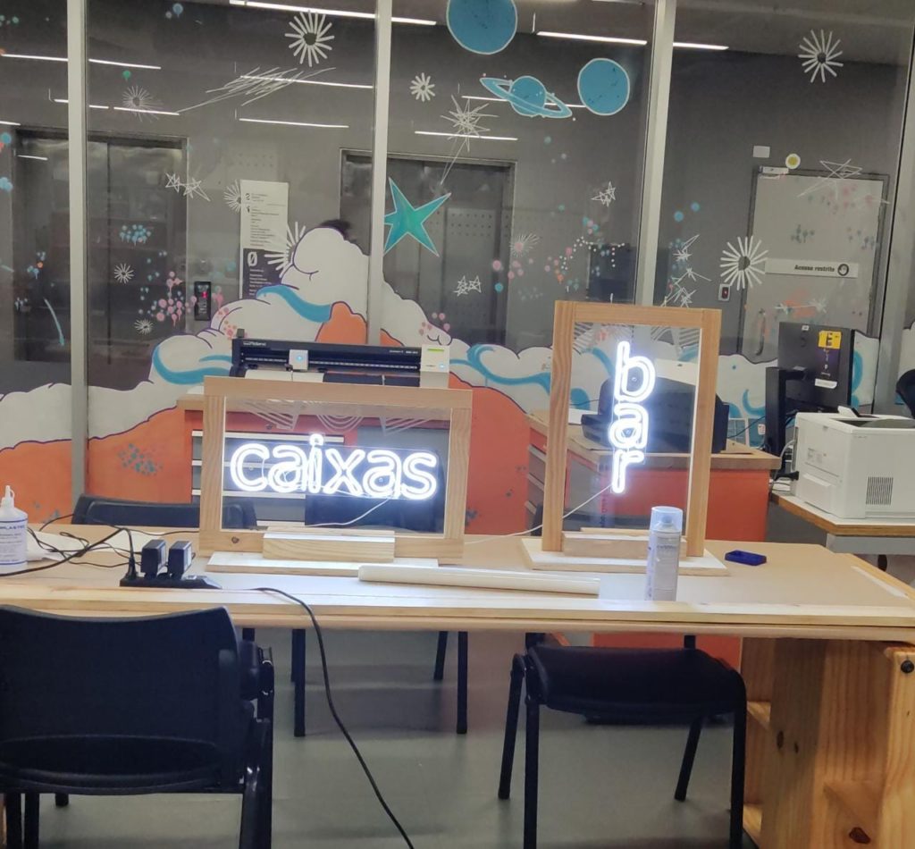 Pouco antes de eu deixar o SESC Guarulhos o pessoal da comunicação me fez um pedido: precisavam de uma identificação mais visível para o bar e os caixas nos dias em que os shows acontecessem no ginásio da unidade. Junto com o pessoal da comunicação desenvolvi estas duas placas luminosas que foram cortadas em acrílico em uma CNC e tiveram neons flexíveis devidamente encaixados e ligados artesanalmente. Como não pude concluir o trabalho, coube a meu colega de ETA, Miguel Alonso, providenciar as fixações ao conjunto todo. Além disso, a comunicação havia solicitado alguns grafismos que remetessem as placas à unidade. O resultado ficou brilhante!